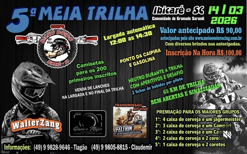 Formulário de Inscrição 5ª MEIA TRILHA BICHO DOIDO - IBICARE - SC - 14/03/2026COMUNIDADE GRAMADO SARANDI